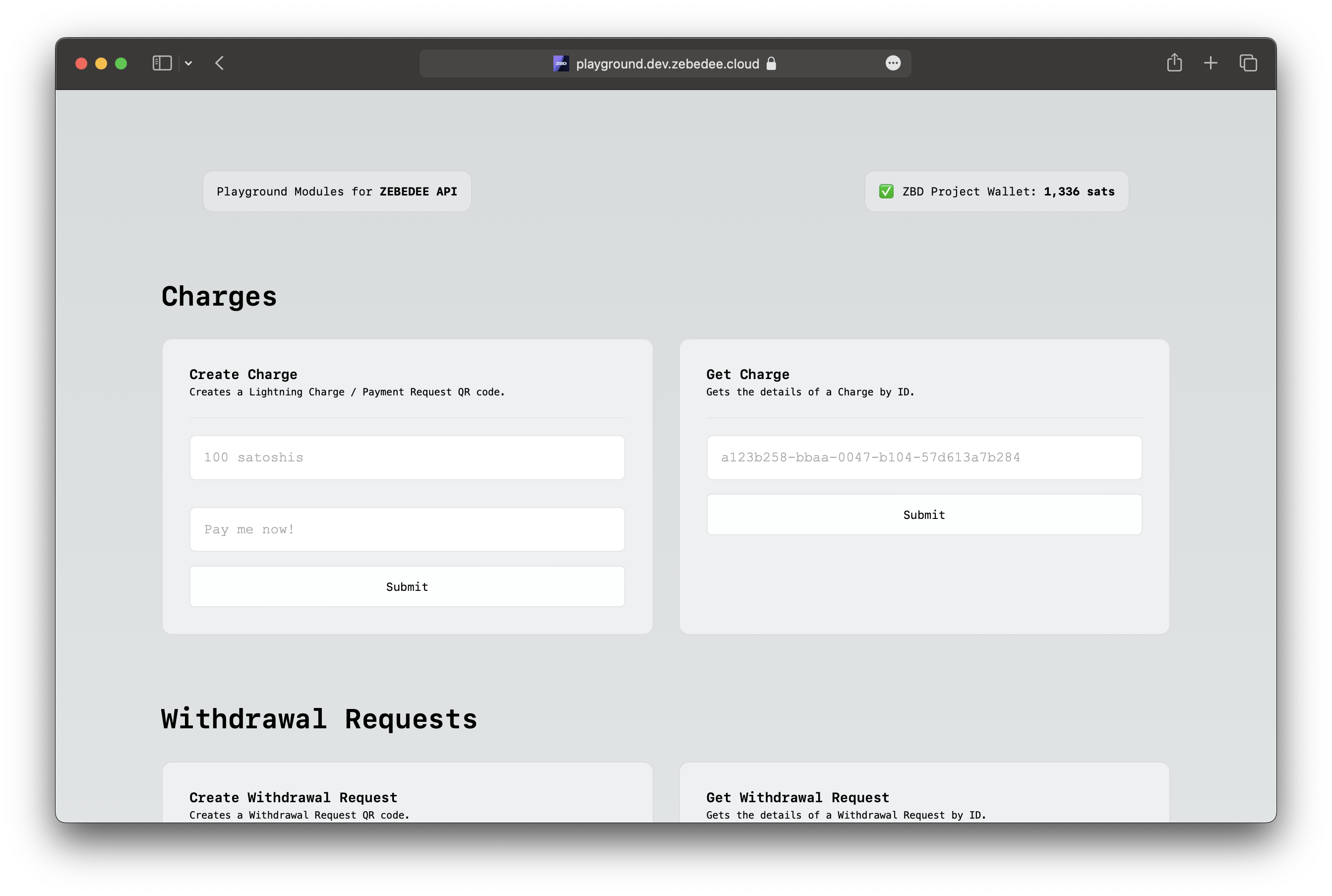 Developer Playground for testing the ZBD API