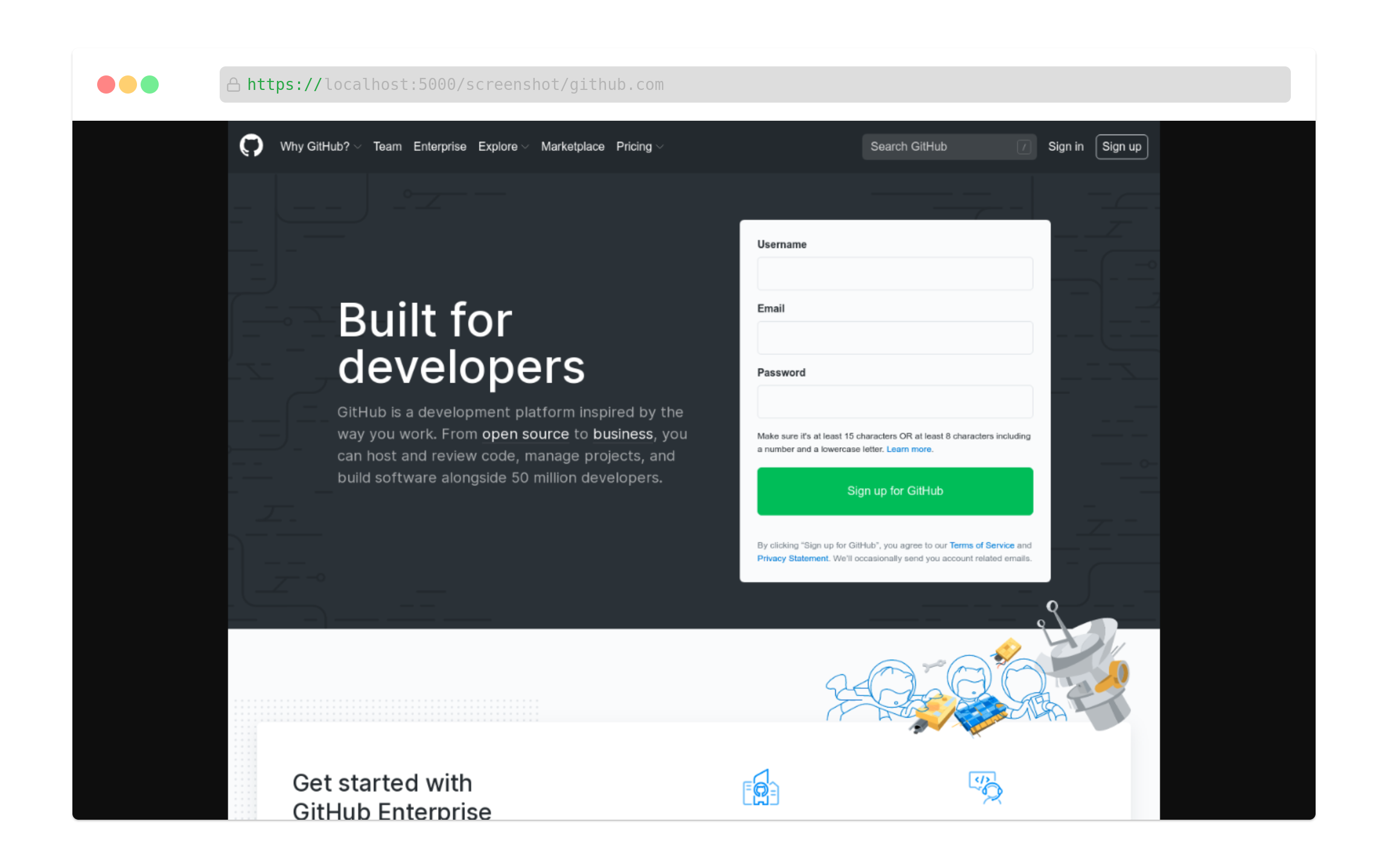 - Visit http://localhost:5000/screenshot/mobile/github.com for mobile view.