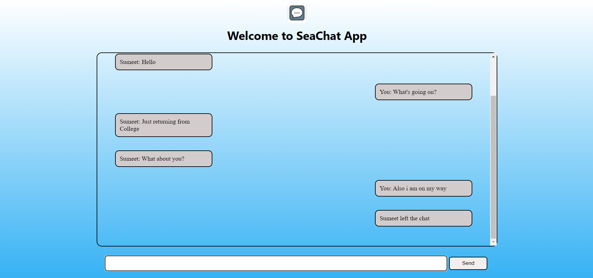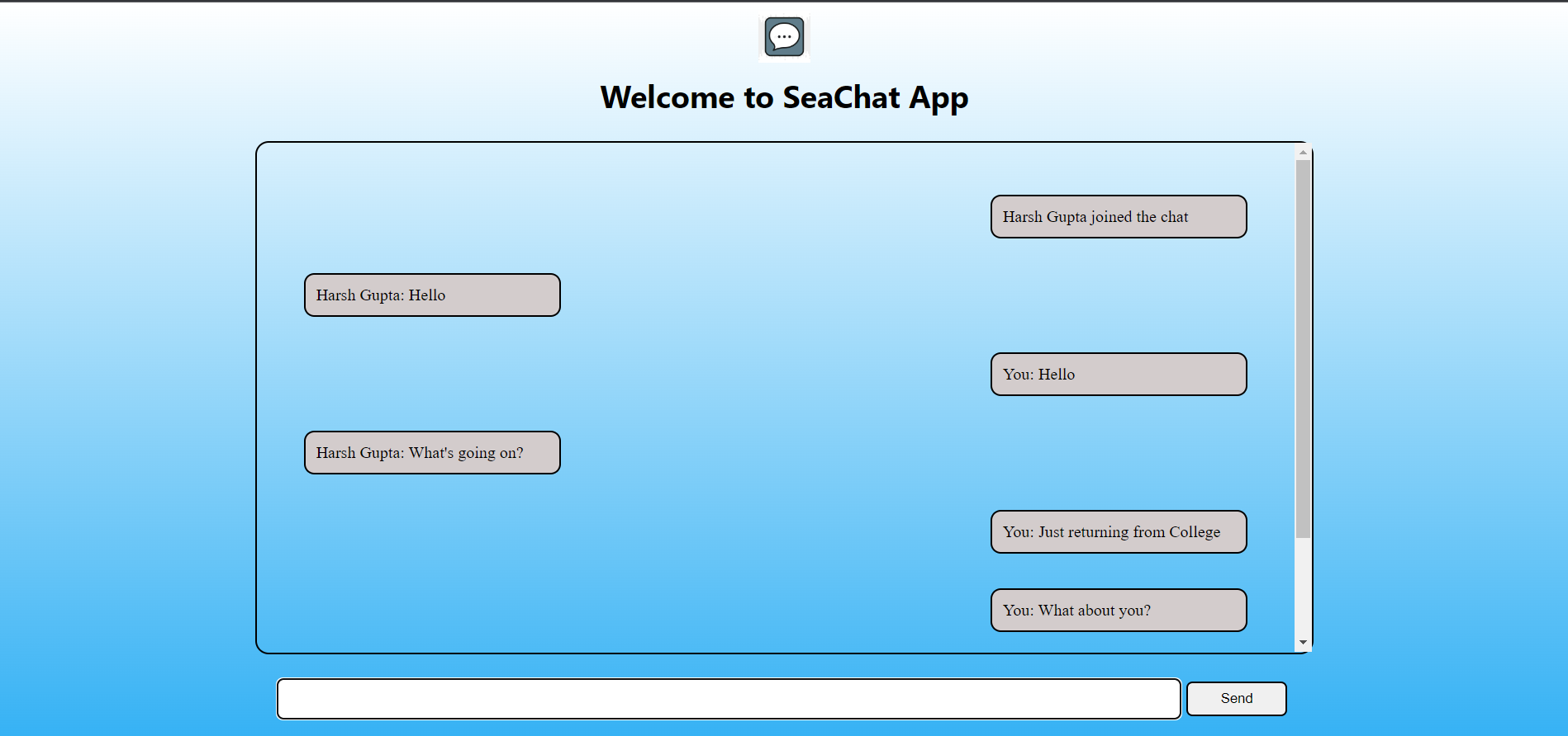 This is a Realtime chat Application name- SeaChat built with help of NodeJS and SocketIo.