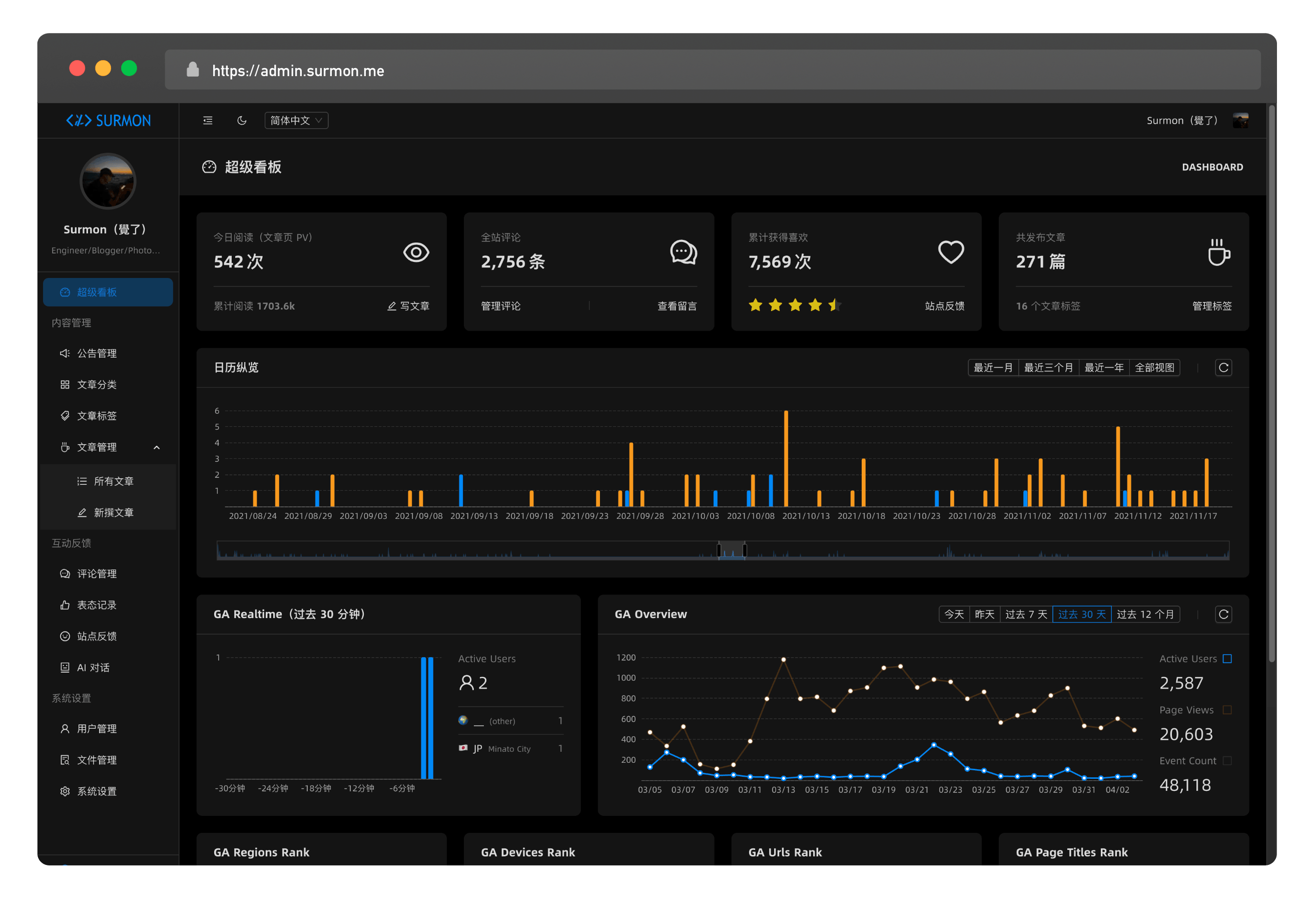 适用于 surmon.me 的博客后台管理系统,使用 React 和 Veact 进行开发。