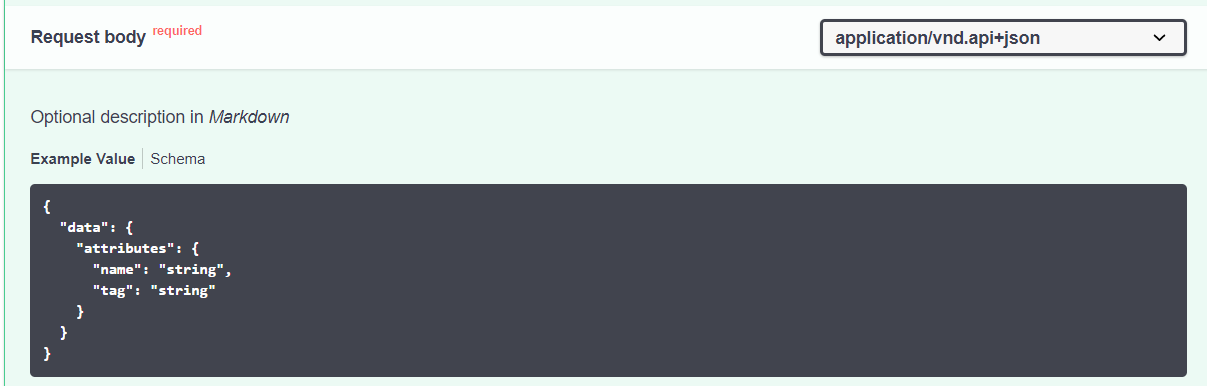 We have different schemas for different content types to support JSON API, along with other types. JSON API requires a very specific body type.