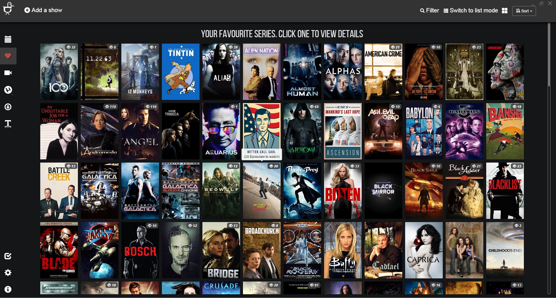 Track and mark which shows you have downloaded, and which ones you have watched.