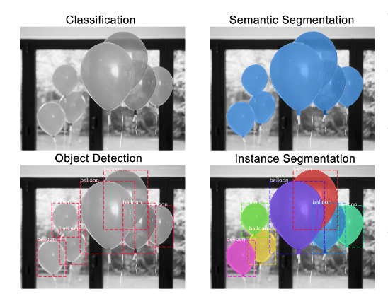 - Semantic segmentation : classifying all the pixels of an image into meaningful classes of objects. These classes are “semantically interpretable” and correspond to real-world categories.