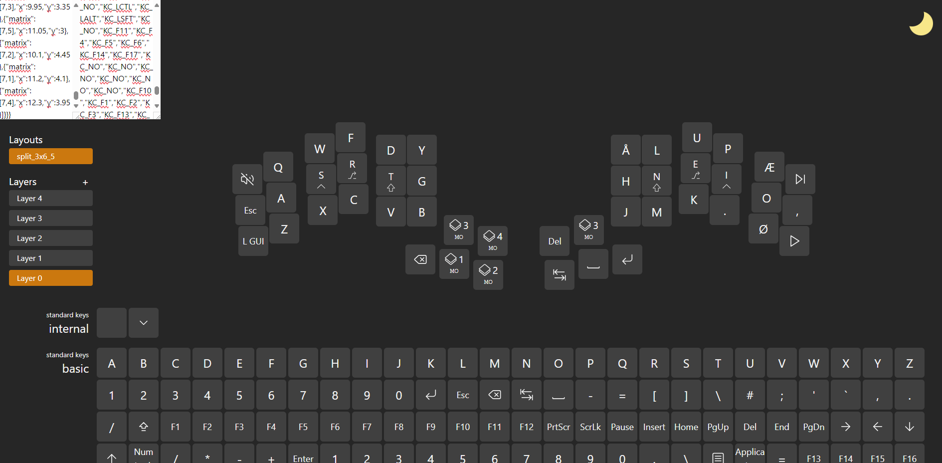 npm run devFollowing code can be used to create a test keyboard (with lots of keys) and layout that combines all used keycodes in qmk_firmware.