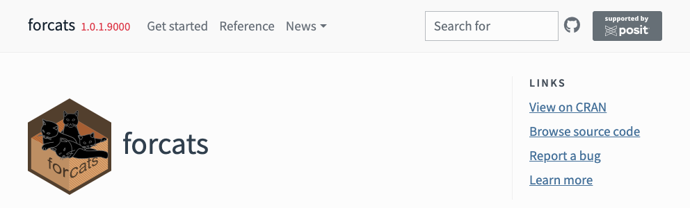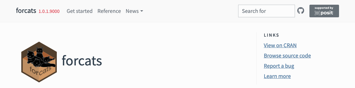 We've recently started adding a "Supported by Posit" badge across all Posit package websites to create a more cohesive brand presence. The badge appears on the far right of the top navigation bar or at the bottom of the hamburger menu. It links to Posit’s main website. @hadley is involved with this initiative.