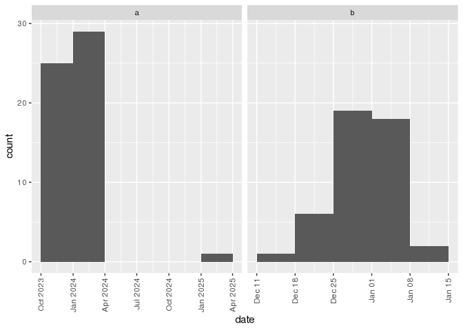 df <- data.frame(date = as.Date("2024-01-01") + rnorm(100, 0, 5))