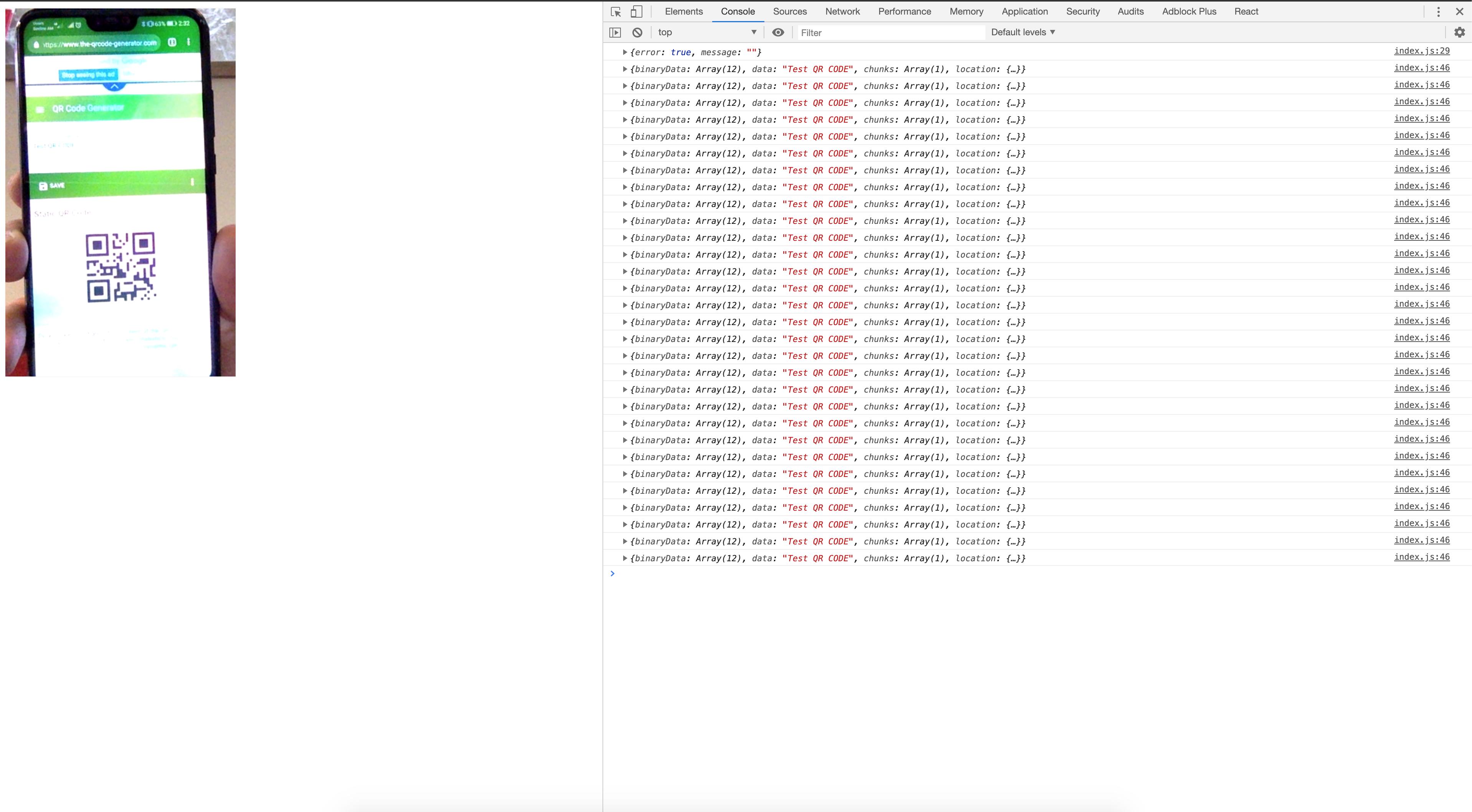 <ReactiveQR onCode={code => console.log(code)} />