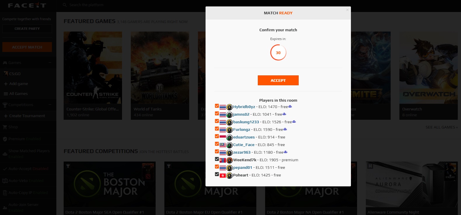 Little FACEIT chrome extension that help you auto accept match when there's one available for faceit.com