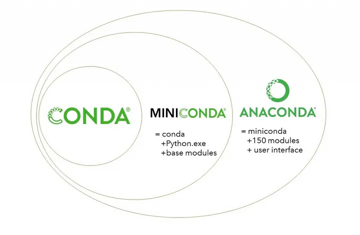 Conda, Miniconda, and Anaconda. Taken from Getting Started with Conda, Medium.