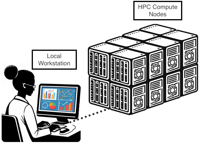 An interactive node, unlike batch jobs which are run asynchronously, allows immediate access to compute. Similar to batch jobs, interactive nodes are submitted to the queue, but once available, you will receive a prompt for a node with the selected resources. Read more on how to launch interactive jobs in the official documentation.