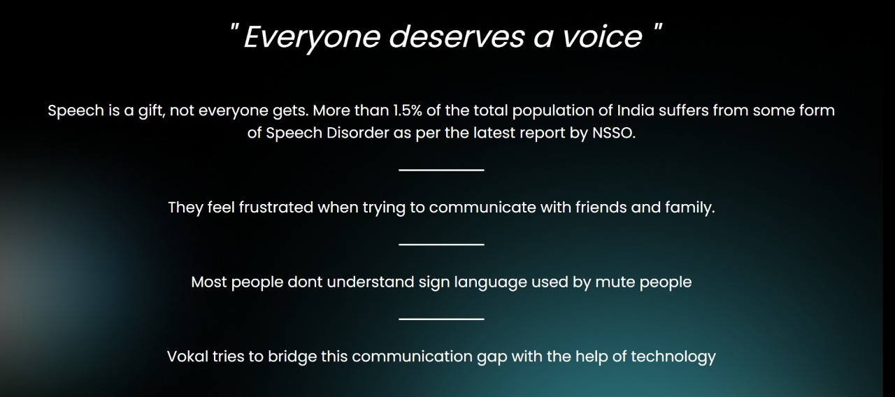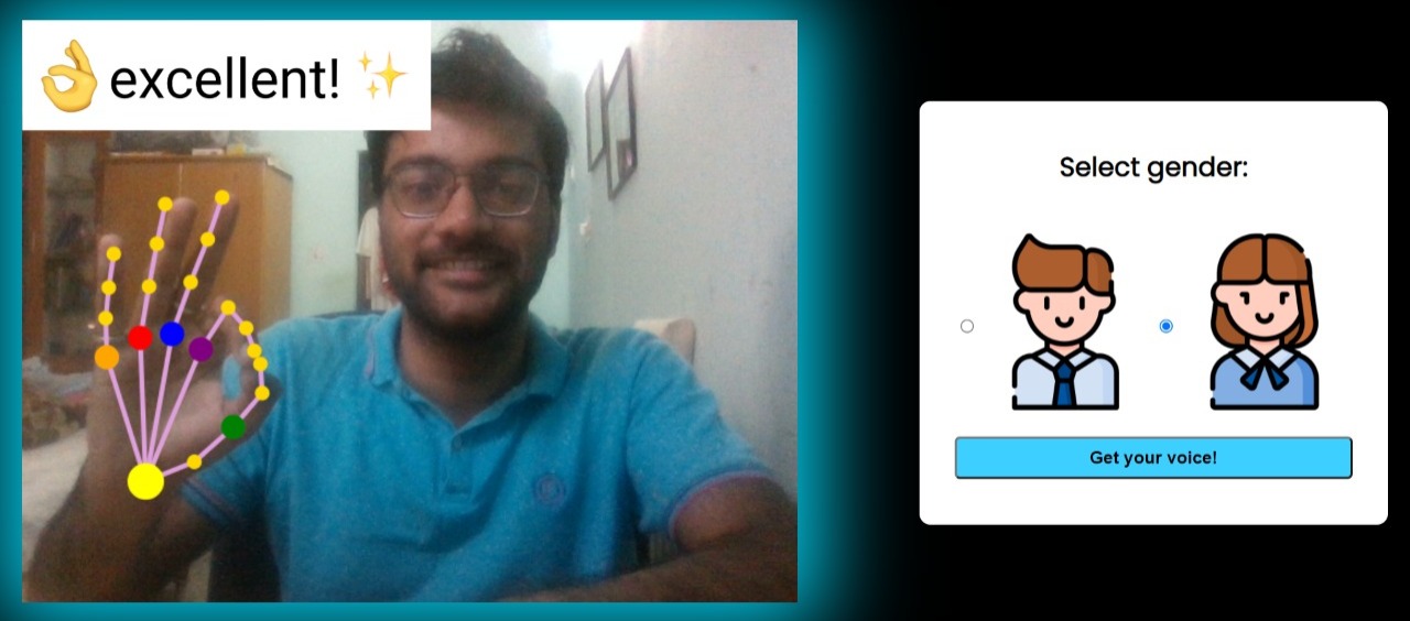 As technology advances, we often aim for newer and better approaches for solving problems leaving behind the orthodox methods. We now have technologies and API's that can work excellent as a translator from one language to another. For instance: Google Translator provides an awesome solution to the language barrier and we can use it very easily to communicate with some person with absolutely no knowledge about their language. But a speech-disabled person doesn't get a lot of benifits in this regard with the technologies available. There are no such proper service or website available that works as a translator for the MUTE i.e. a service that understands the sign language and converts it into user understandable form. So here was our motivation to build this project - VOKAL- Giving voice to the muted.