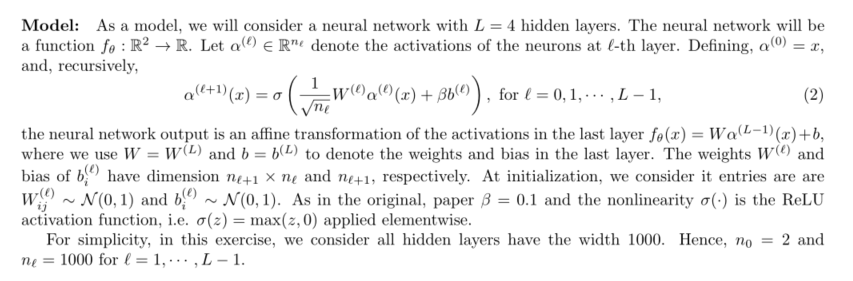 \alpha^{L+1}in the paper andf_\thetain the assignment). I think one must scale the output layyer by1/\sqrt(n_L)and multiply the bias by\beta. In the reference code of Antonio, this is how it is implemented. When I implemented myself without that scaling, the learning rate of1was too large, and the training did not converge.So hopefully you don't have to fall into that trap. :)