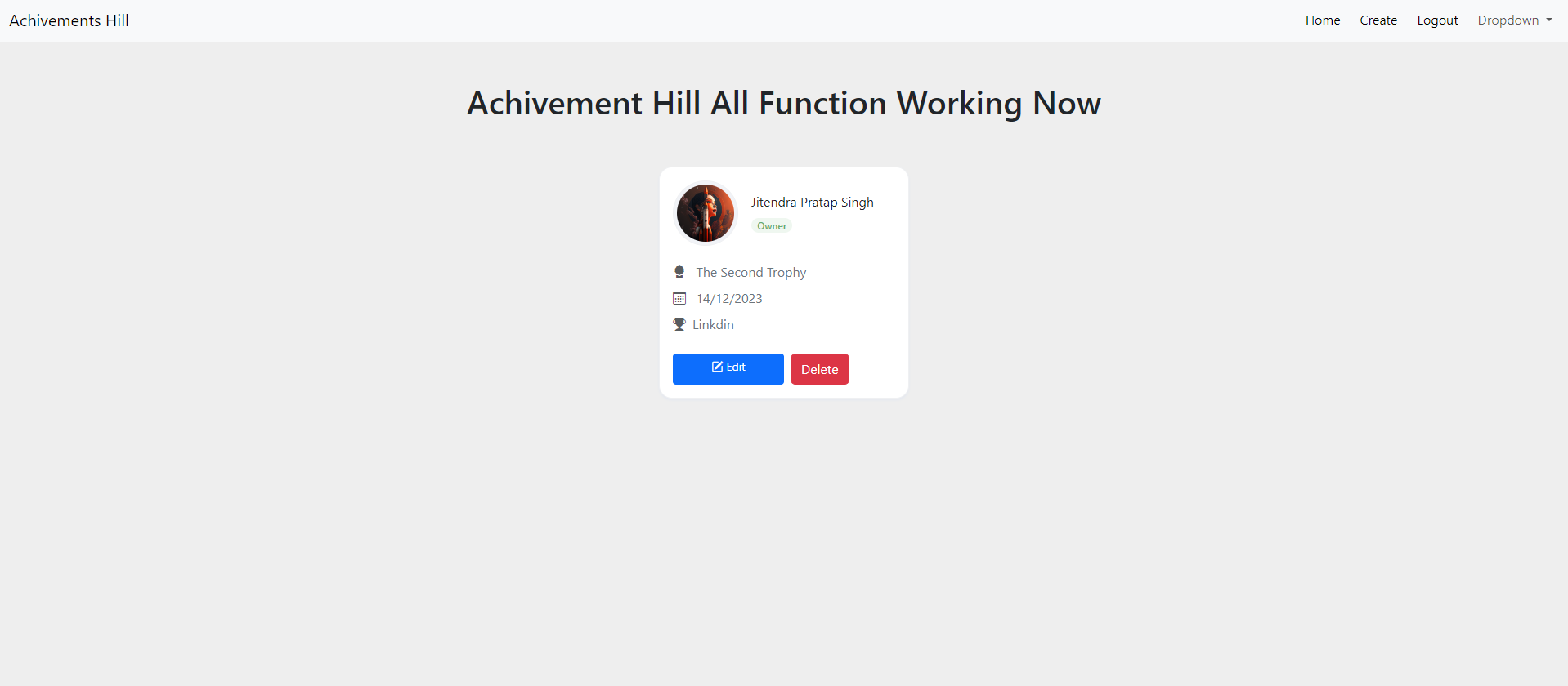 Achievements Hill is a full-stack web application that enables users to create and share their achievements. Built using Flask and Cloudinary for media storage.