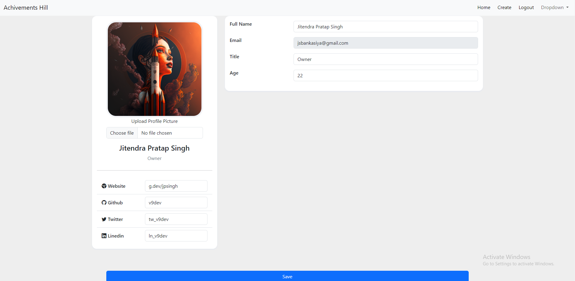 - Achievement Creation: Add new achievements with titles, descriptions, and images.