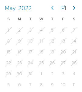 clrDate, those who are out of this range get the class is-disabled.Dates which are from the next or previous month get the class is-excluded.