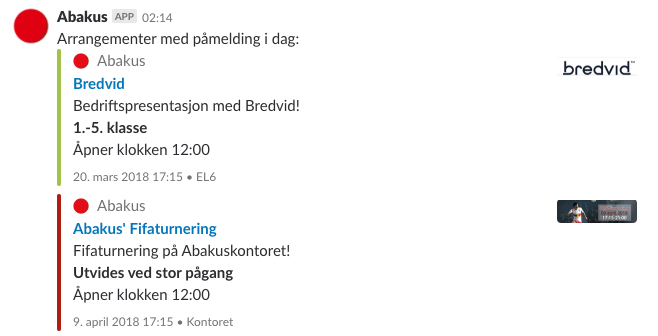 Posts events opening today to Slack. Built as an example application for the LEGO API.