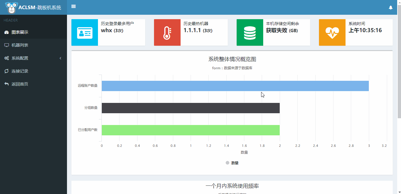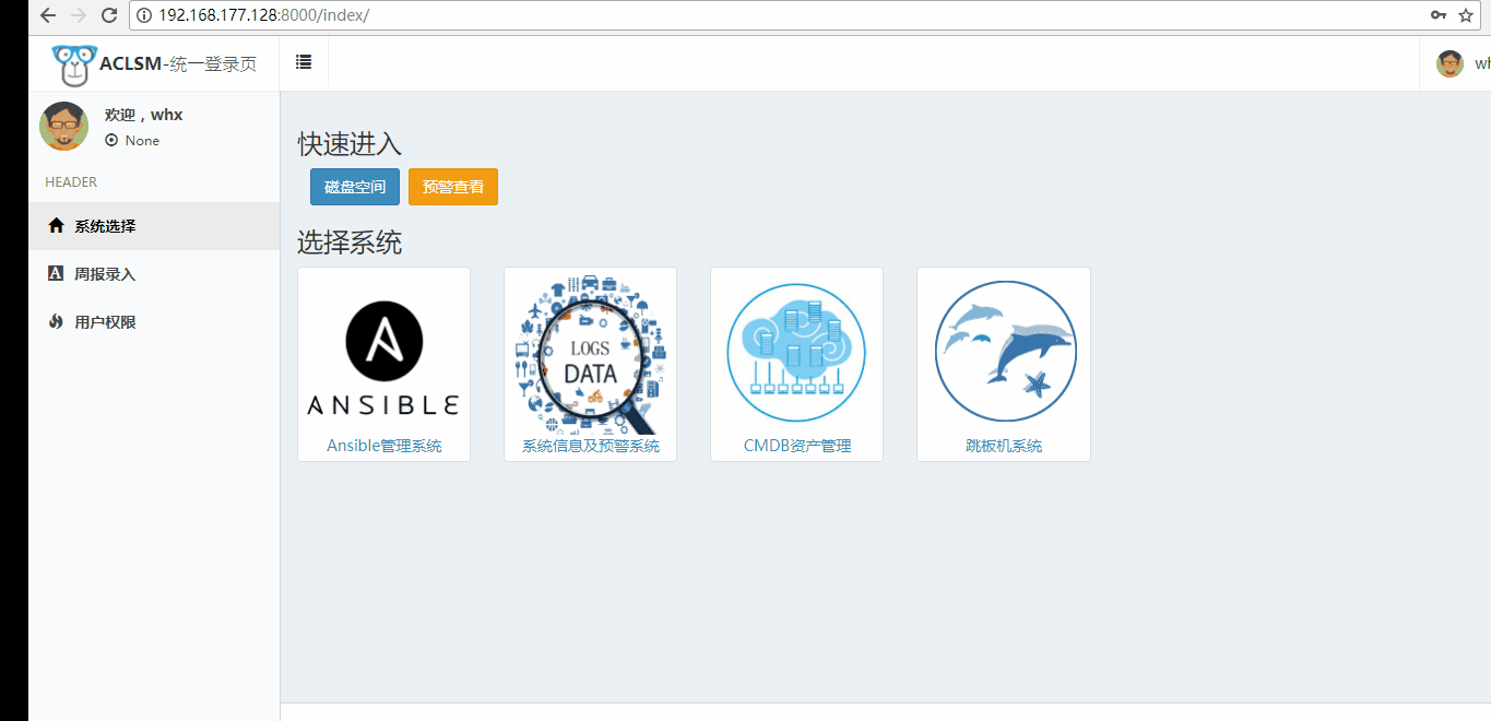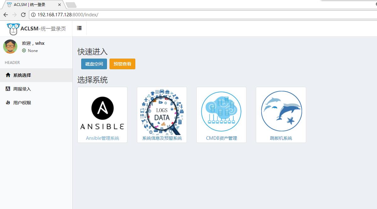 Aclsm 全新上线跳板机功能!!! 基于ansible开发的ansible web管理工具,集成了cmdb,和系统信息展示,跳板机功能功能。 页面化ansible实现了文件推送,添加机器后自动添加ssh key认证等功能,cmdb部分通过在ansible中添加的机器自动收集硬件信息入库 更新日志: 2018.1.17 上线跳板机系统,修复已知bug 2017.12.15 增加了pyalbook(roles)执行功能,修复部分bug 部署文档 部署环境: centos6版本+python2.7+django1.8 数据库推荐使用mysql,不推荐使用sqllite(如果您仅简单体验可以使用) ansible被控制端需要安装libselinux-python,执行yum install libselinux-python -y 系统截图: 登陆 首页 添加机器 cmdb 通知 堡垒机首页 堡垒机连接 部署方法 部署文档