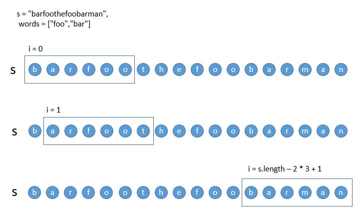 for (int i = 0; i < s.length() - wordNum * wordLen + 1; i++) {