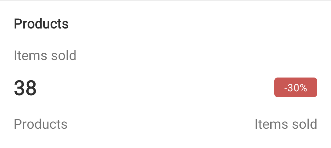 We will integrate real data from the API in another issue. Until then, we can use fake data for the previous and current periods and generate a percentage delta value based on the Total Items sold difference between the two periods.