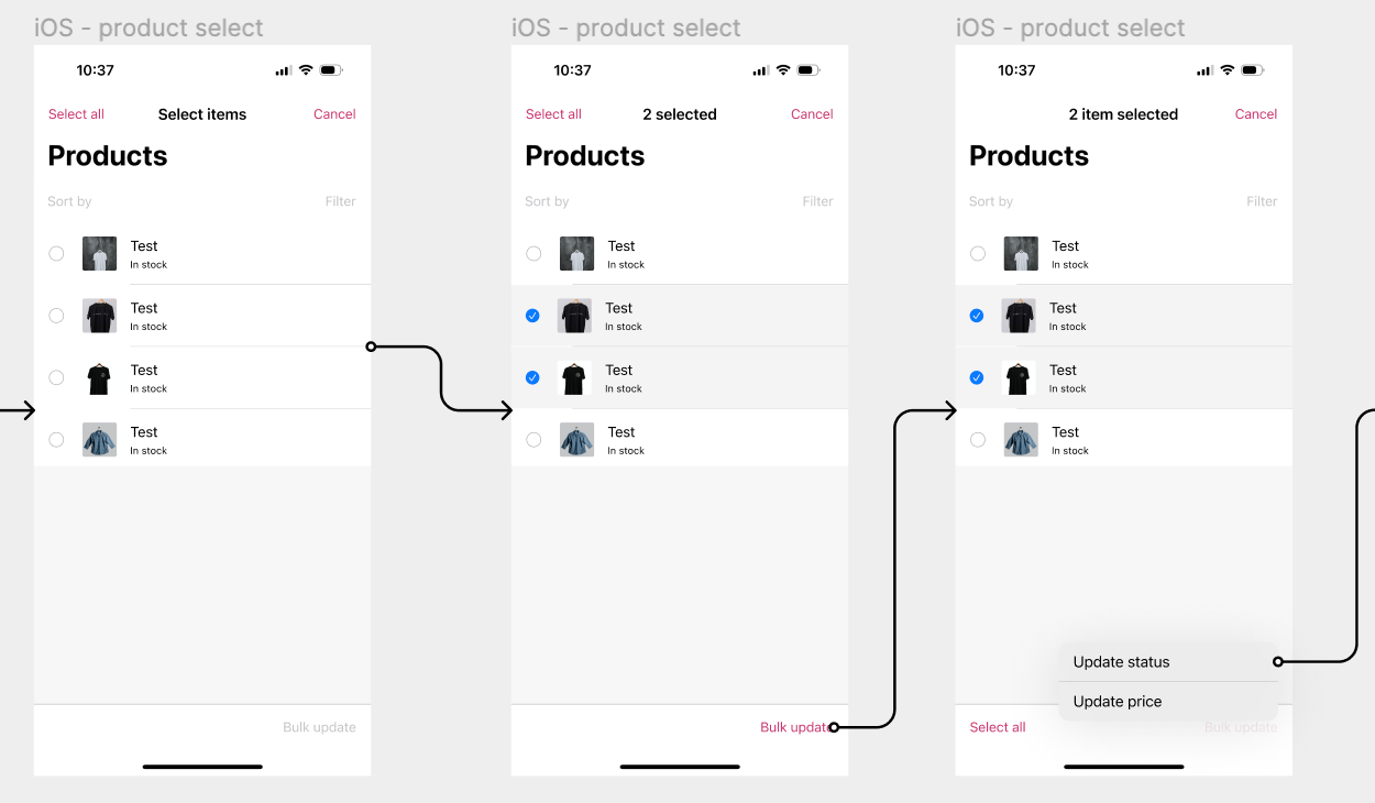 - ability to select multiple products Bulk Editing: Add selection state to products list #8563