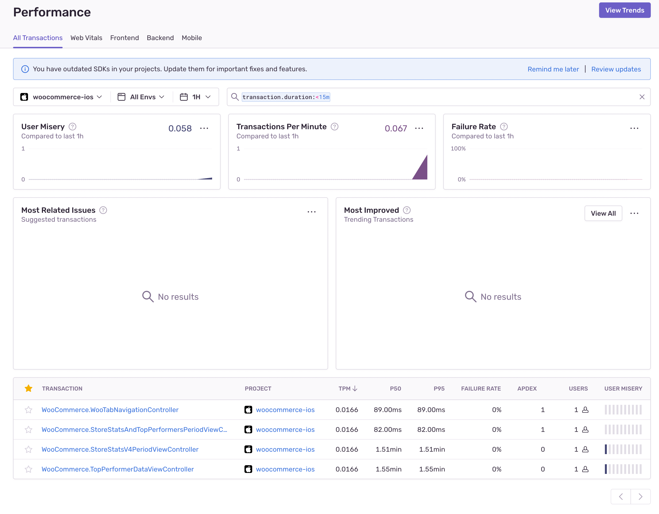 This PR aims to enable performance monitoring, the concrete implementation of which lives in Tracks and is currently implemented via Sentry, behind feature flags.