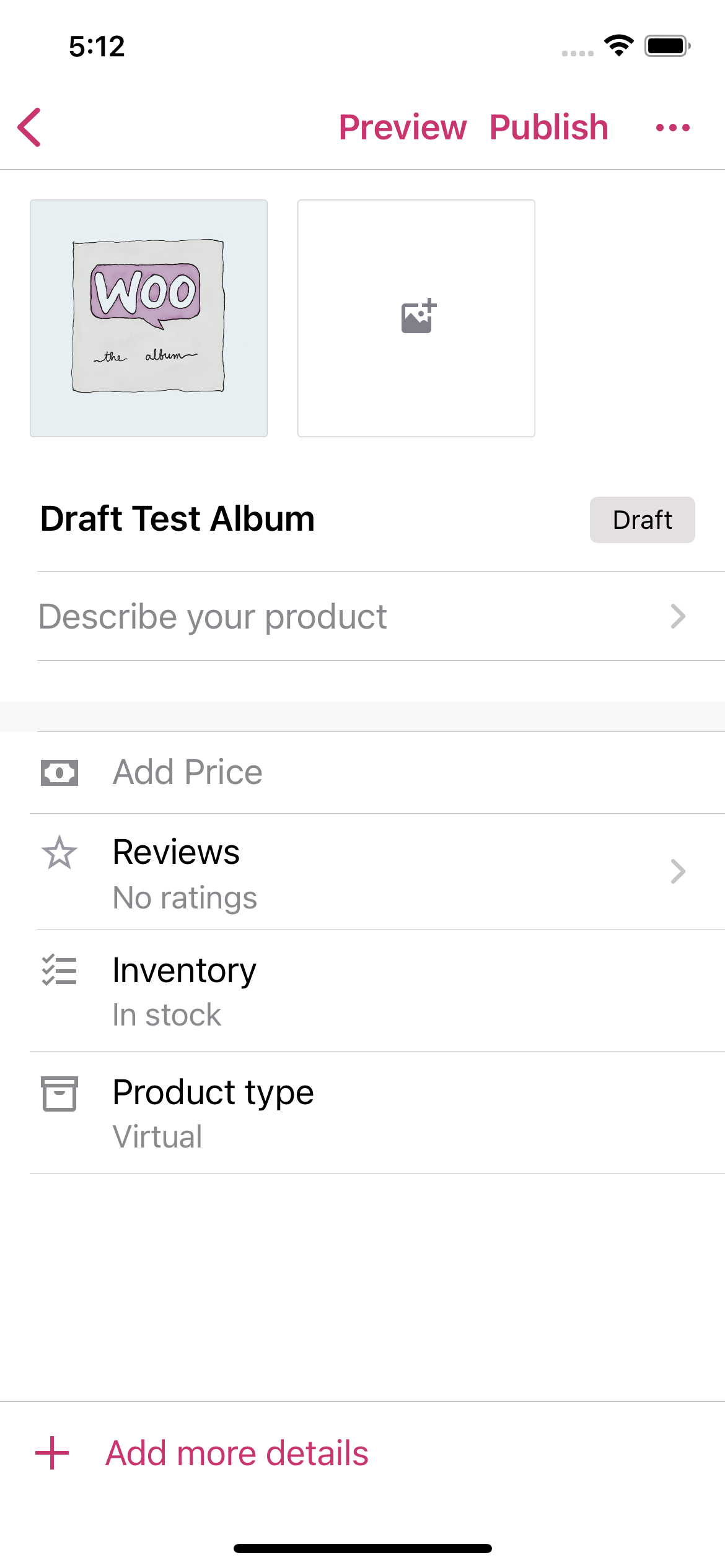- If you start creating a new product, you get immediately the preview button. Is that ok or should we wait for at least one change?