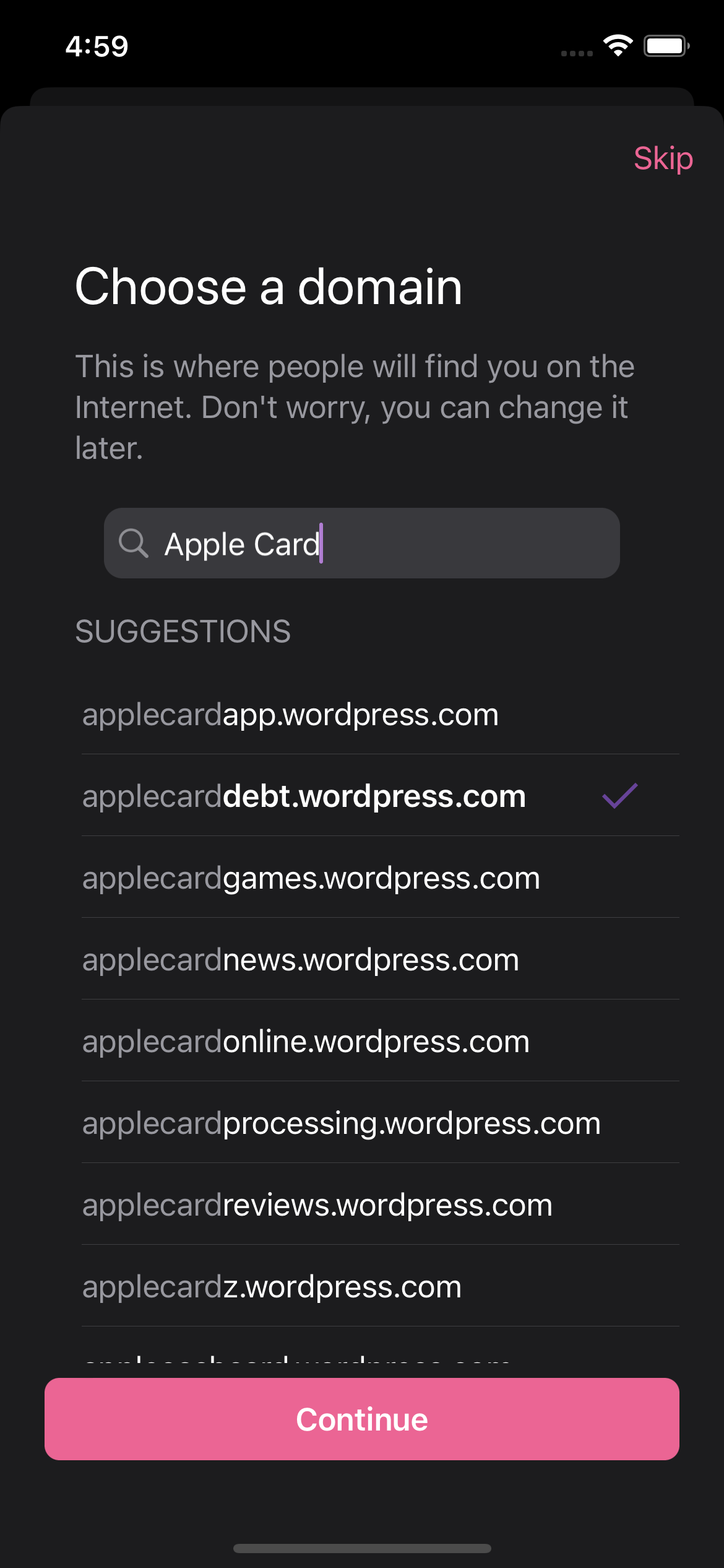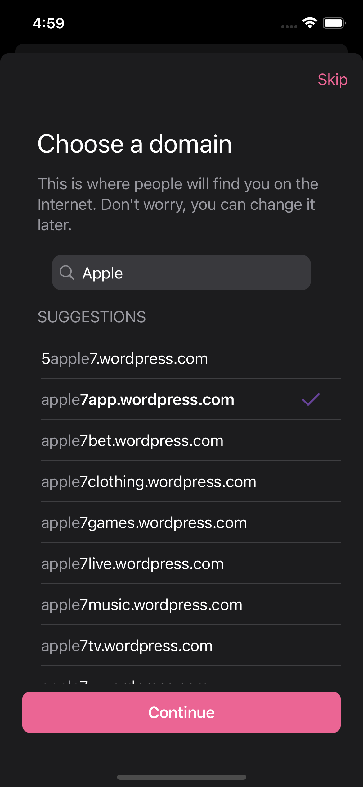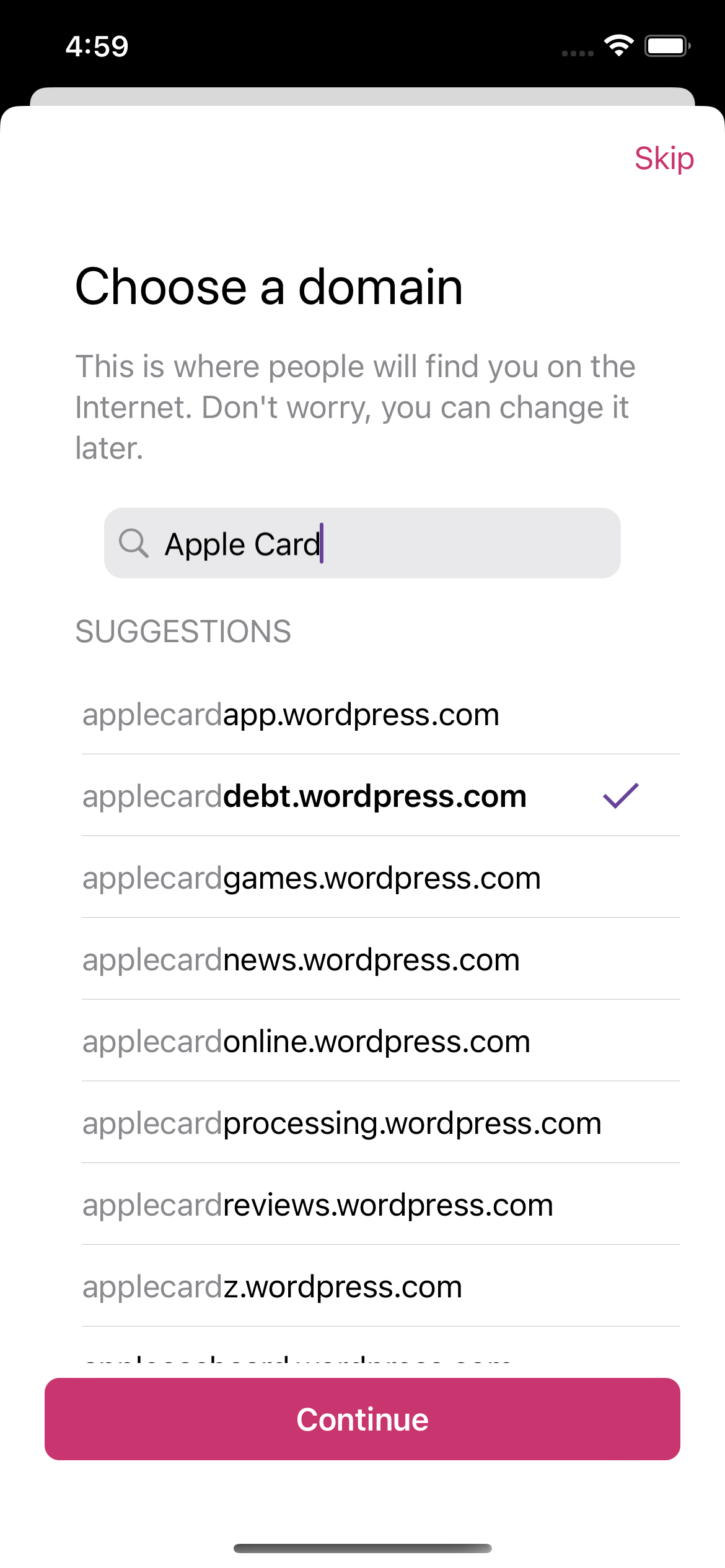 • Tap Create a new store in the action sheet --> the store picker should be dismissed, then the domain selector should be shown with a very basic UI