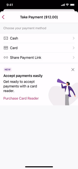 Menu > Payments > Collect PaymentEnter an amount, tap