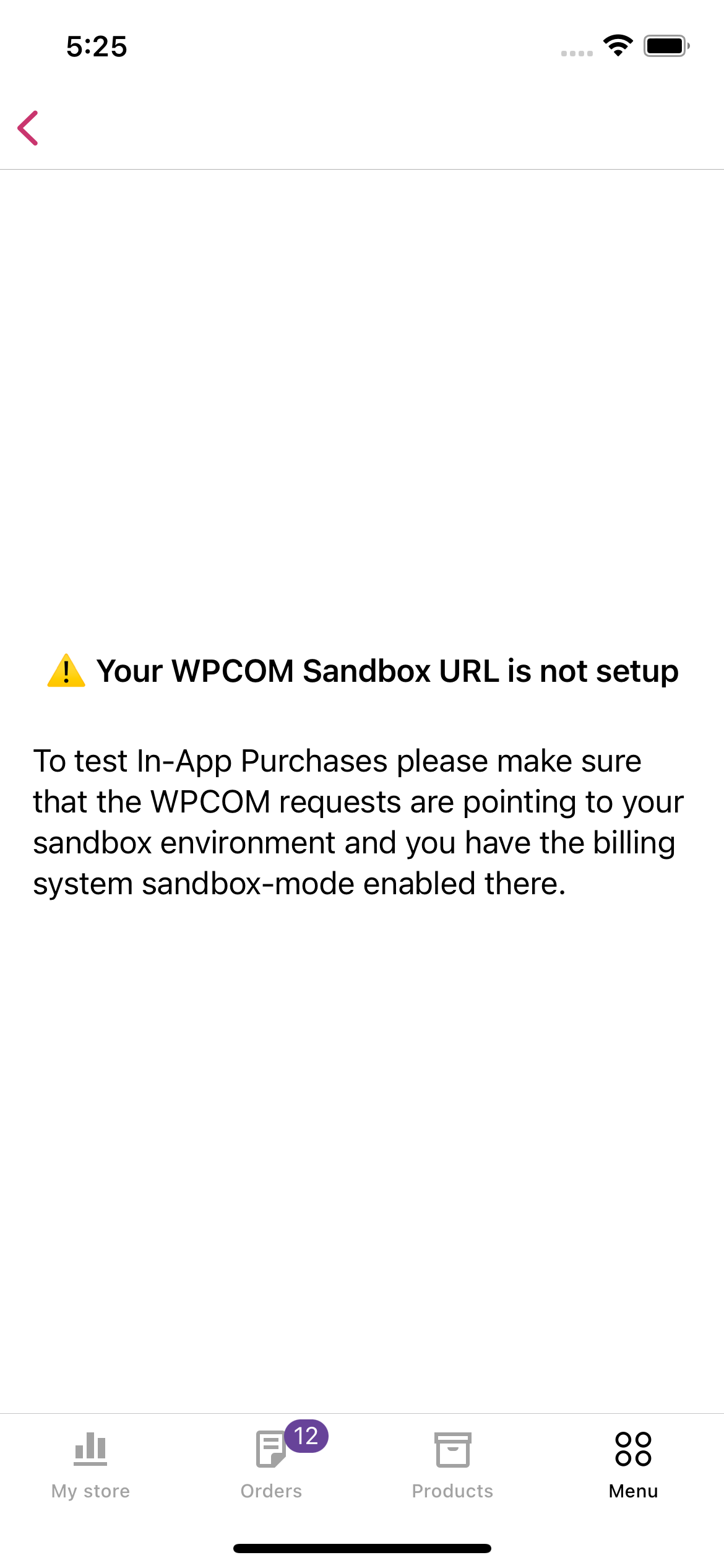 As we had a few test IAP transactions that ended up in production because the sandbox billing mode was not enabled when testing, I wanted to propose the addition of a warning text and an alert reminder before purchasing a product in our IAP debug screen. we add a warning text instead of the IAP Debug Menu if the sandbox URL was not set in the WooCommerce Xcode schema.