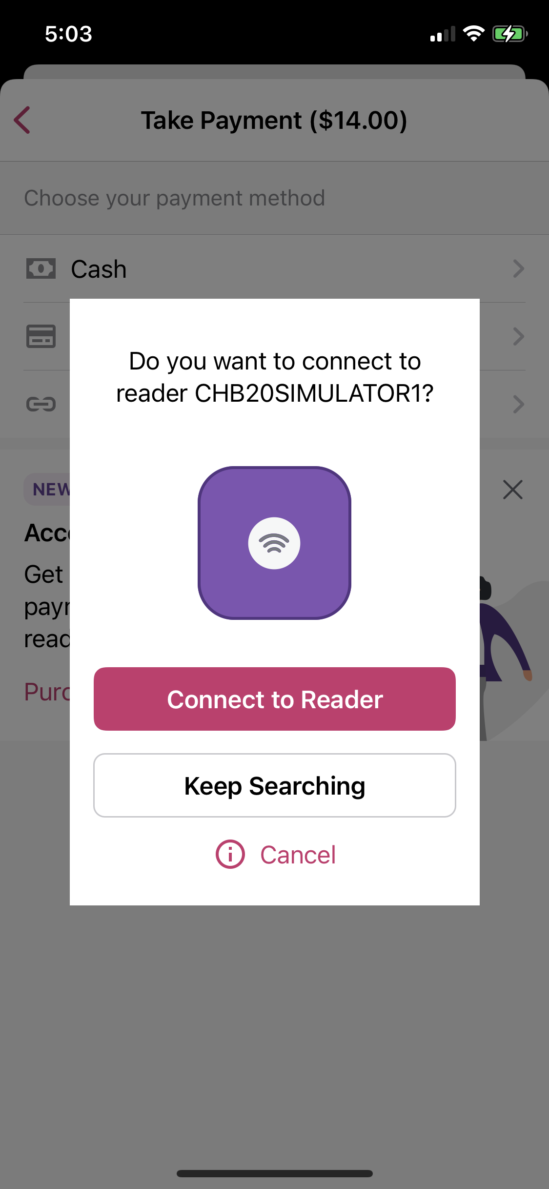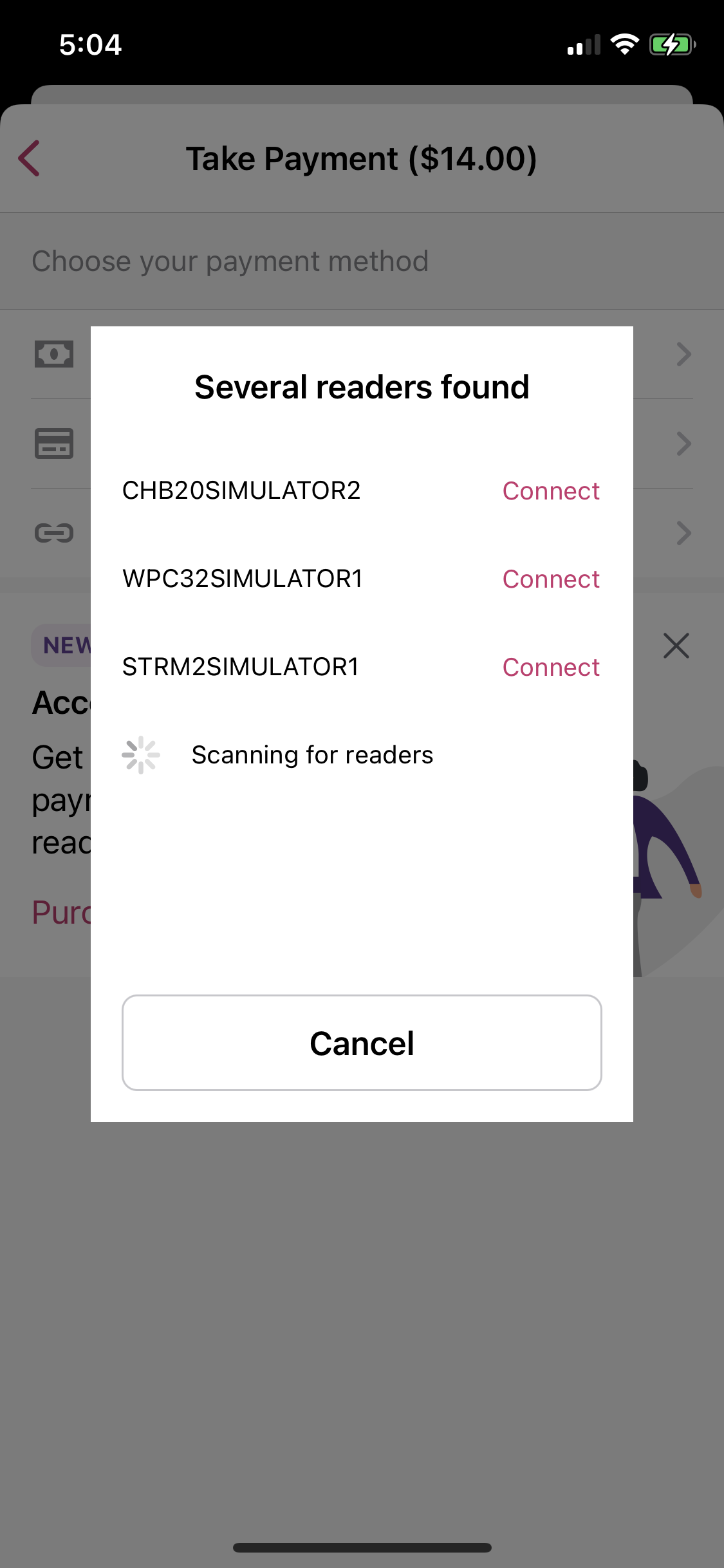 N.B. There are known issues with the payment flow after connection. In particular, #8289, #8288, #8274, and #8085. The payment flow "works", but these issues aren't addressed yet, and some are pre-existing in the legacy flow (just a lot less obvious when you use a bluetooth reader.)