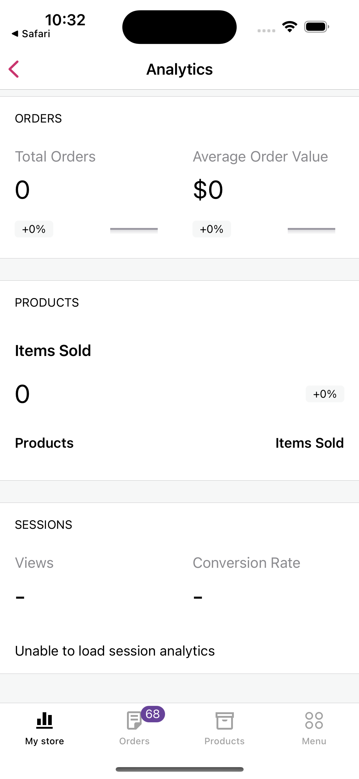 3. Confirm the Sessions card displays real data (placeholders and sync error for now).