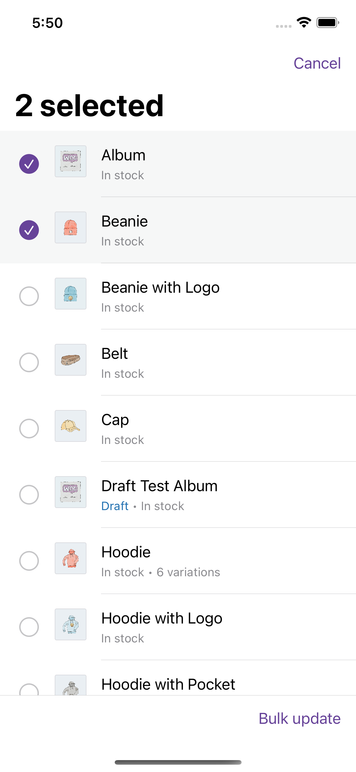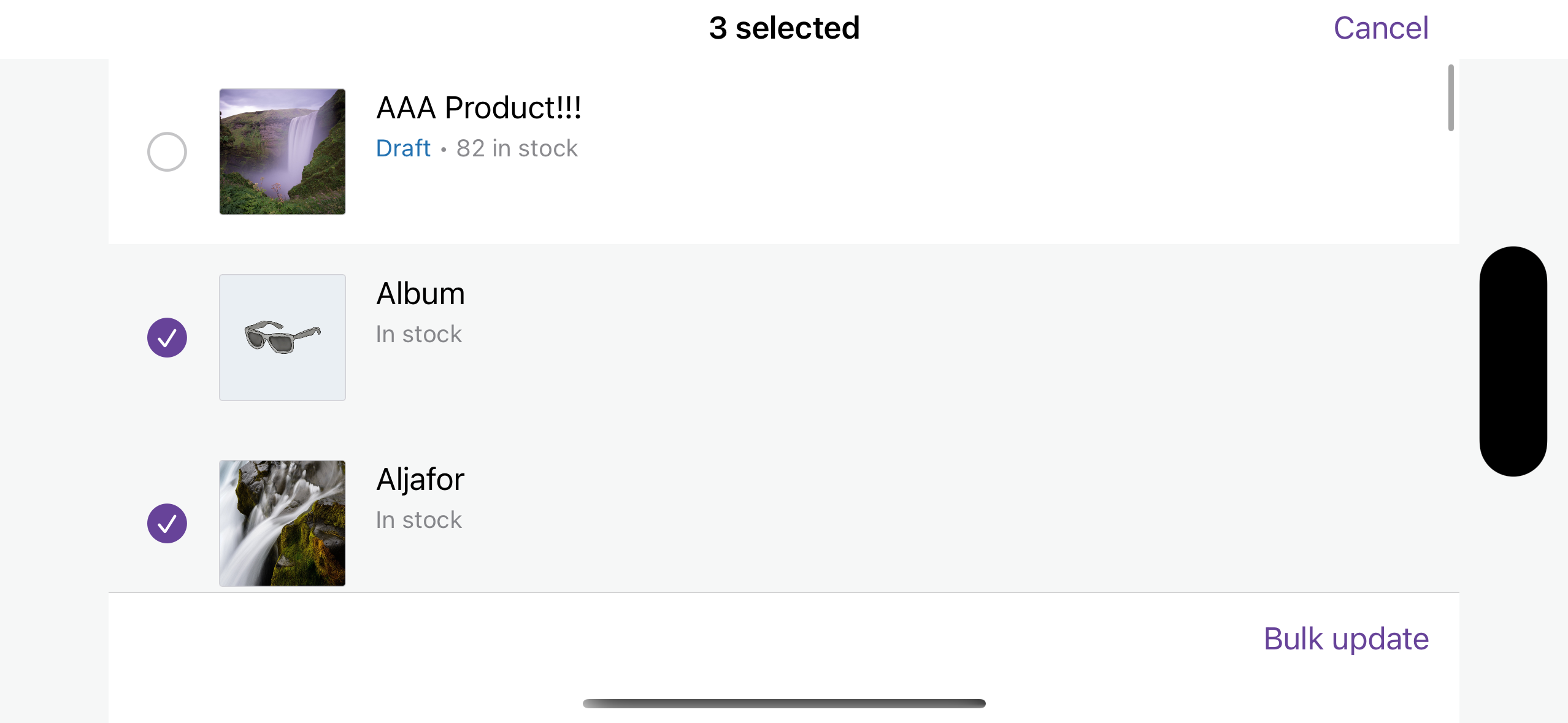 2. On the products list tap the "Bulk Edit" button in the navbar.