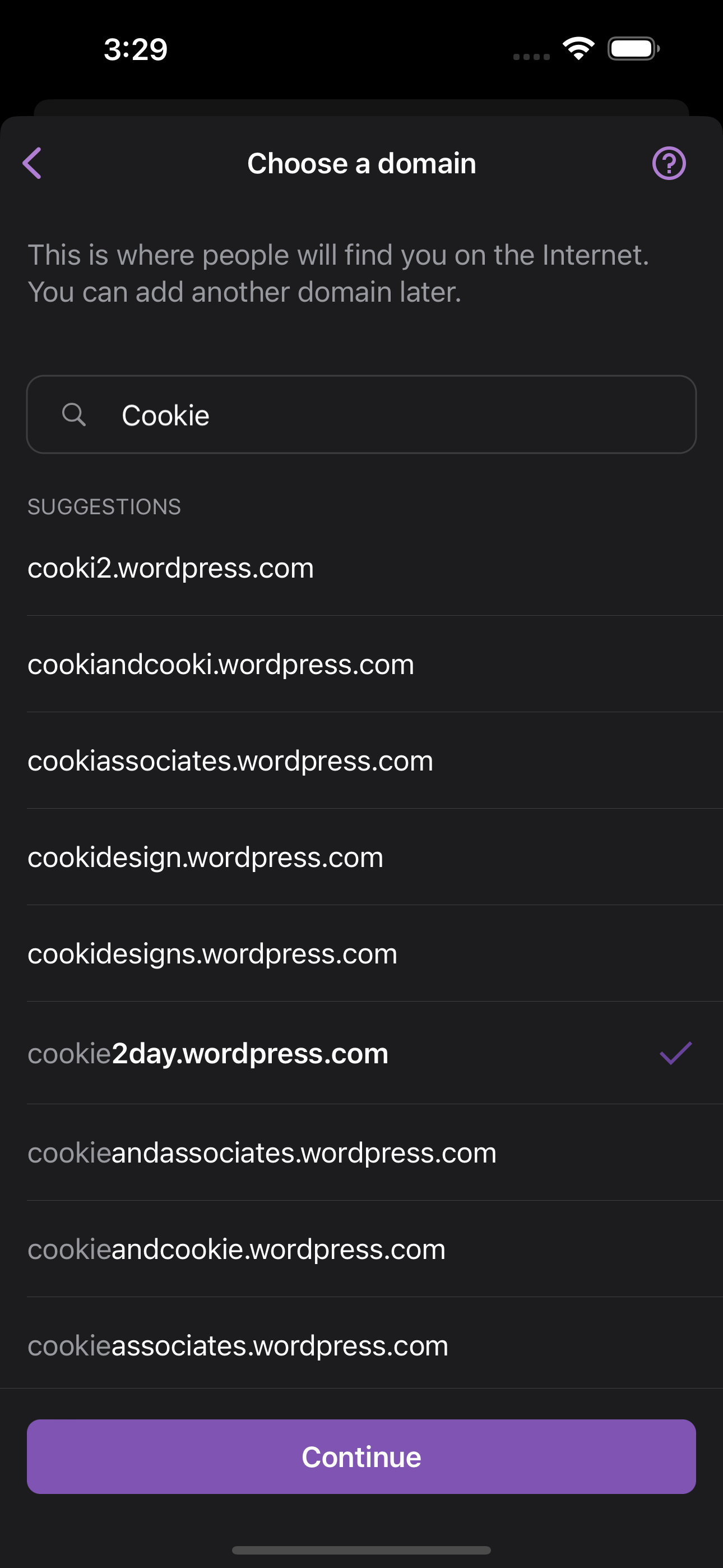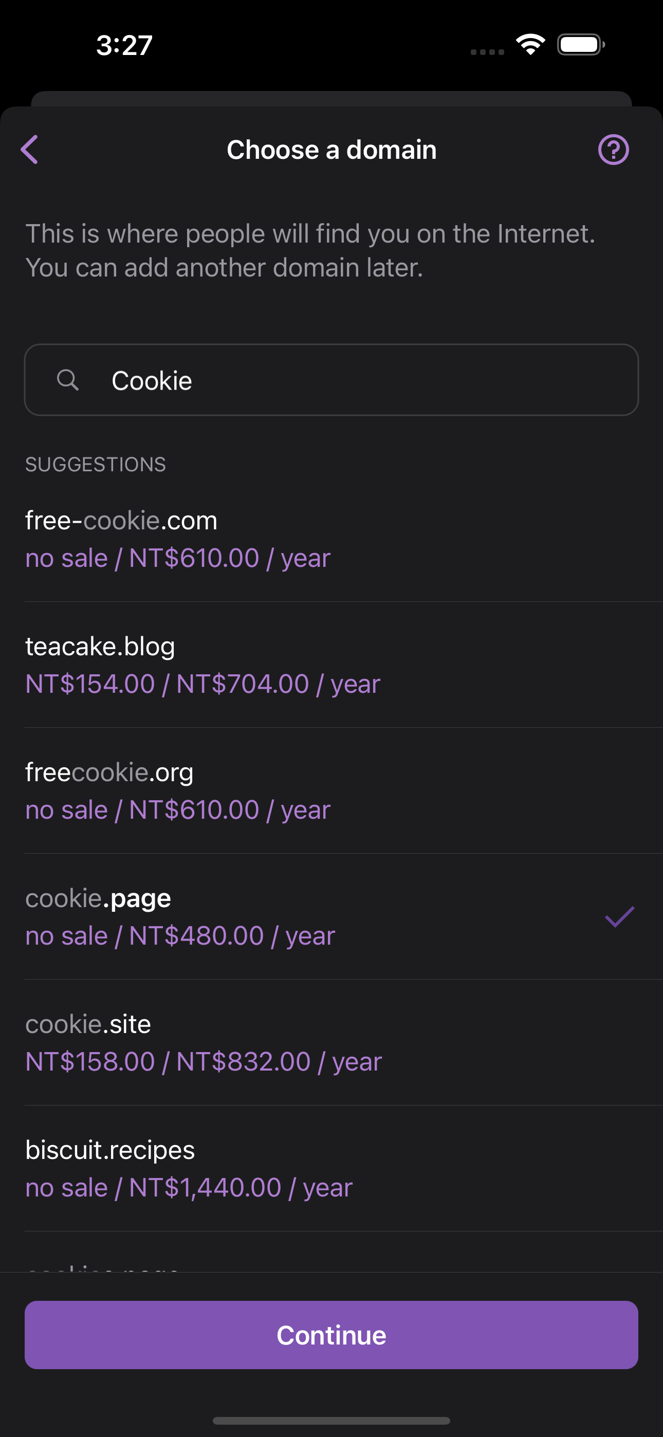 DomainrowAdd a domain--> domain selector with paid domains should be shown, and each domain should have price infoContinue--> a message about the selected domain should be shown in the consoleScreenshots