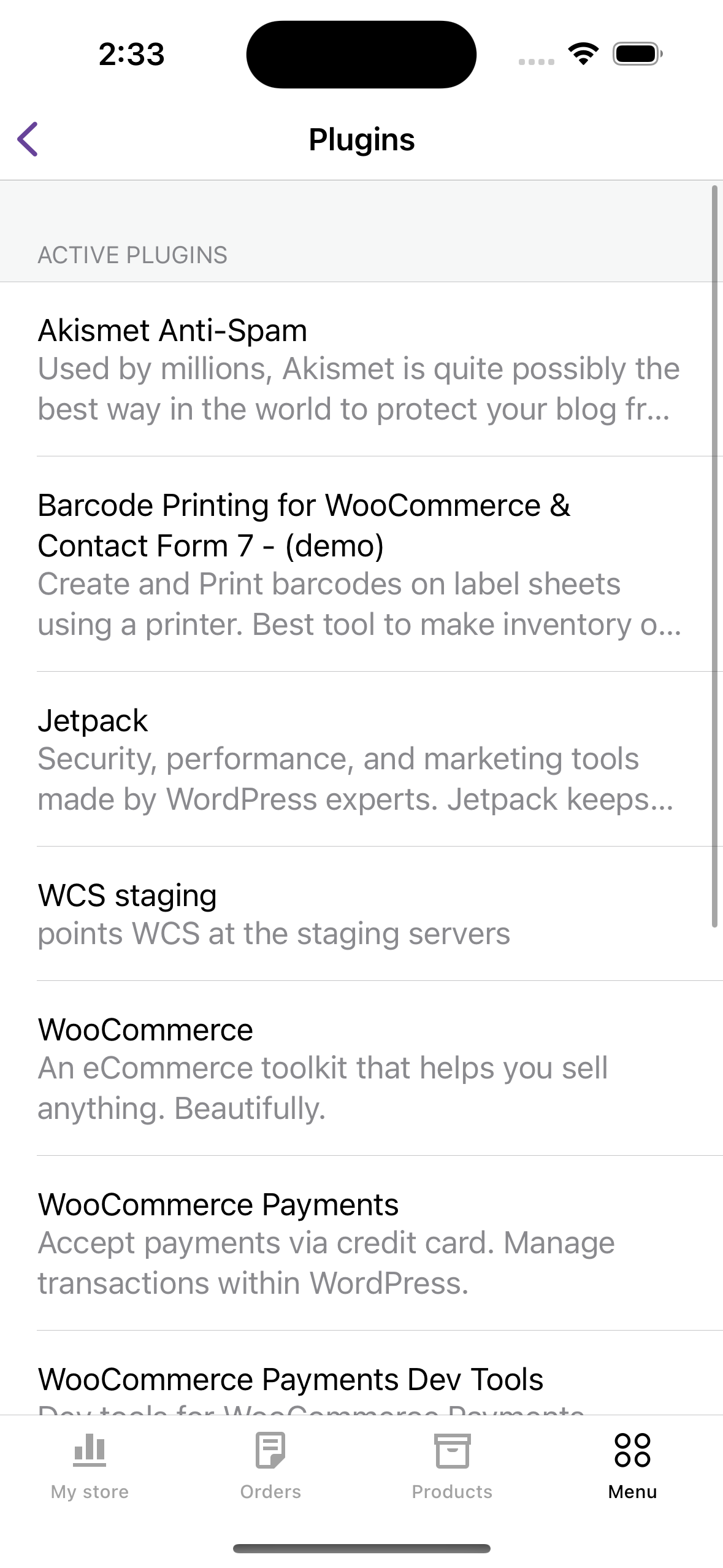 • Select Plugins - all the site's plugin should be listed if your account is a shop administrator. Otherwise, the list will not be displayed.