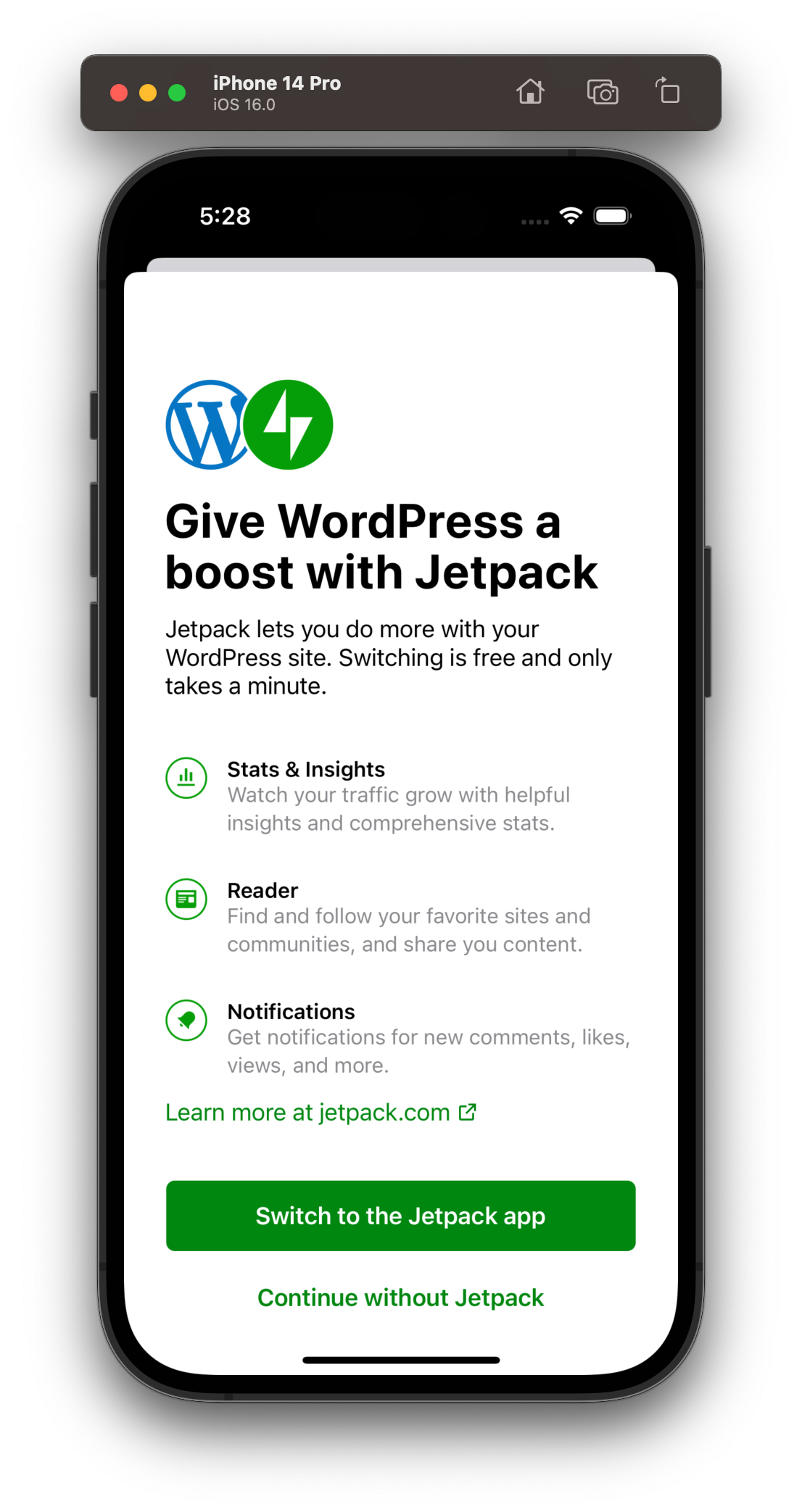 JetpackFullscreenOverlayGeneralViewModel.swiftline 183return nilFeatureFlag.swiftline 130return trueFeatureFlag.swiftline 150return "dummy_key"Testing Instructions