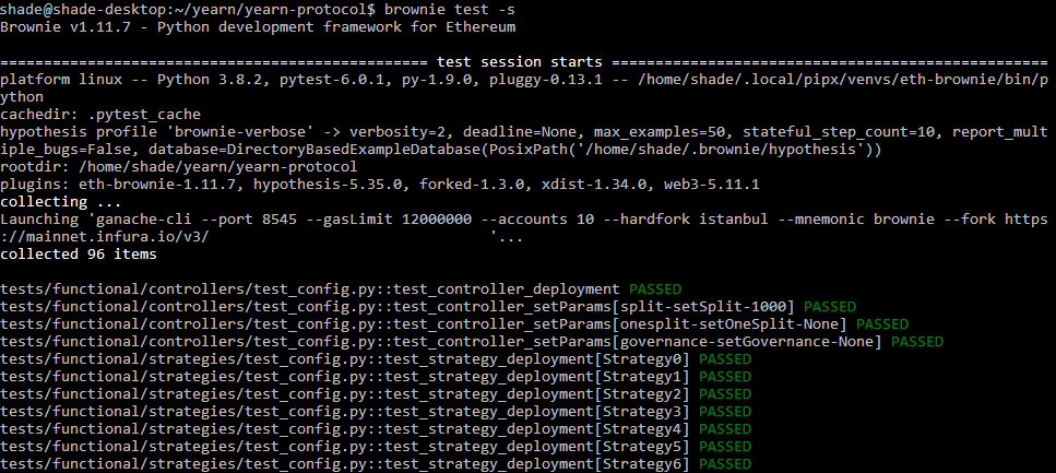brownie test tests/functional/ -s -n auto* If everything worked, you'll see something like the following:- Launch VSCode