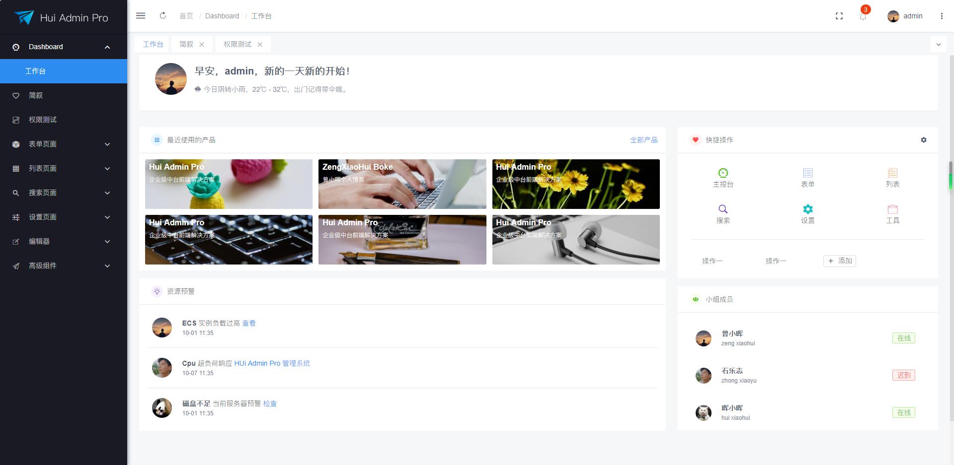 - Hui-Admin-Pro 在线演示