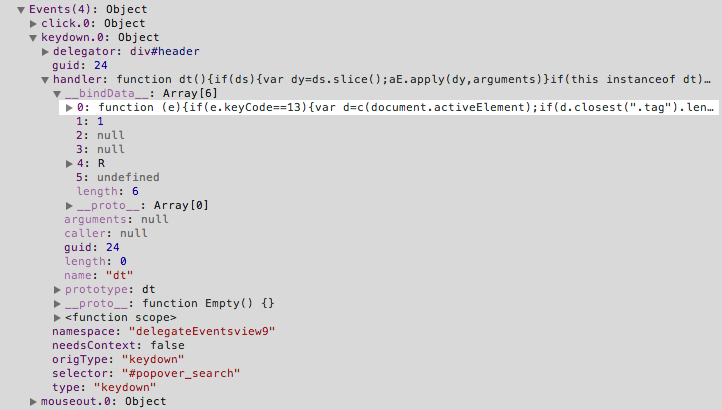 is a bound function and not directly the function that does the "work". The section below on Finding bound handlers shows you where common binder functions store the bound function. - And more.