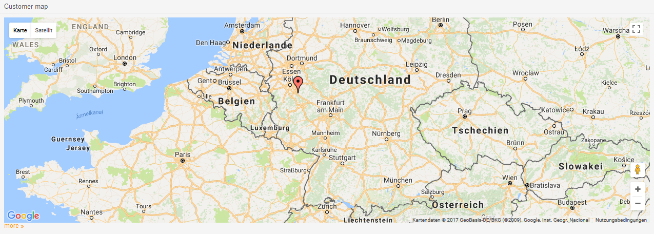 With the Google Maps integration you will be able to see all customers on a map that ever had a ticket (customers with open tickets are marked in an extra color). The map is available in the dashboard and also as a dedicated map on a large separate page (just click on “more” in dashboard).